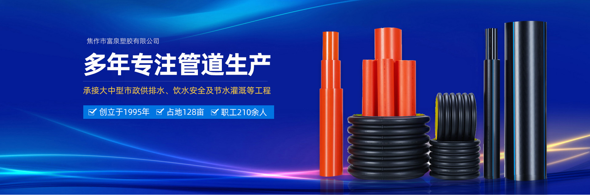 - 焦作市富泉塑膠有限公司,創(chuàng)立于1995年,是一家集研發(fā)、設計、生產、銷售為一體的大型管材企業。公司位于太極故里、黃河之濱一一河南焦作溫縣。公司占地128畝,現有職工210余人,其中具有中技術職稱的19人。生產、檢驗設備58臺(套),包括PVC實壁管生產線11套、PE實壁管生產線12套、HDPE雙壁波紋管生產線6套、PVC雙壁波紋管生產線5套,檢驗設備14臺(套)。主要產品有:Φ20mm-630mm、各種壓力規(guī)格的PVCU、PVC-M、PE給水管材,PVC-U節(jié)水灌溉管材,HDPE燃氣和礦用管材,DN200-800mm的HDPE、PVC雙壁波紋管及各種噴灌、滴灌工程材料。承接大中型市政供排水、飲水安全及節(jié)水灌溉等工程?! 「蝗苣z公司重視產品的質量、安全、環(huán)保和節(jié)能,在同行業中率先完成了“新華節(jié)水產品認證”,全方面通過ISO9001:2008國際質量管理體系、IS014001:2004環(huán)境管理體系和OHSAS18001職業健康安全管理體系的一體化導入,并建立起規(guī)范的現代企業管理體系。公司以“質量”為先導,采用質量跟蹤、多環(huán)節(jié)把關的方法,組建具有行業水準的企業技術檢測中心,常年委托水利部節(jié)水灌溉設備檢測中心、河南省產品質量監(jiān)督檢驗院對產品跟蹤檢測,并由中國人民保險公司承保產品質量。公司連續(xù)多年被河南省水利廳確定為“安全飲水設備、節(jié)水灌溉設備”定點生產企業,并獲得“中國名優(yōu)產品”“質量、服務、信譽AAA企業”“河南省**產品”“河南省水利企業”“河南省守合同、重信用企業”等榮譽稱號。 富泉塑膠公司堅持“用戶為上”的服務理念,長期以來,全方面關注客戶價值,不斷提升服務水平。服務隊伍常年為客戶的產品設計、施工、安裝提供合理的方案和全程細致、周到、**、快捷的技術服務。公司自成立以來,一直堅持以人為本的宗旨,塑造企業形象,并致力于新產品的開發(fā),憑借雄厚的技術開發(fā)能力,先進的工藝制造流程,嚴格的質量管理保證體系,優(yōu)良的售后服務網絡,已成為河南省大的飲水、灌溉及排水管材設備制造商。產品暢銷全國,而且還以公司雄厚的綜合實力在業界中占據著重要的地位。